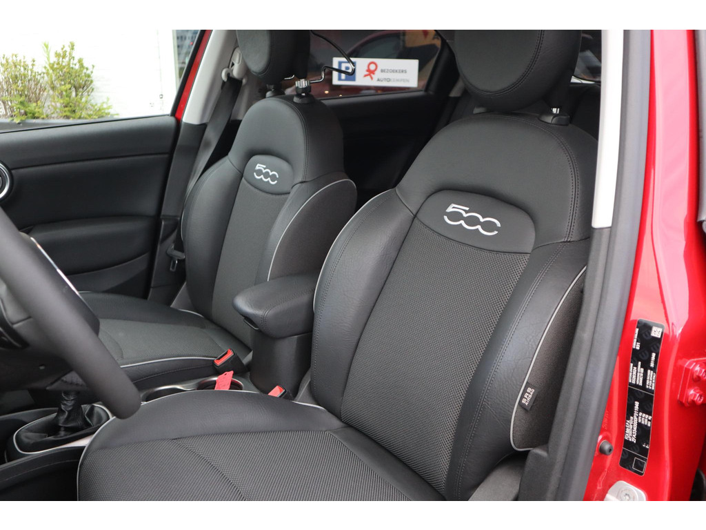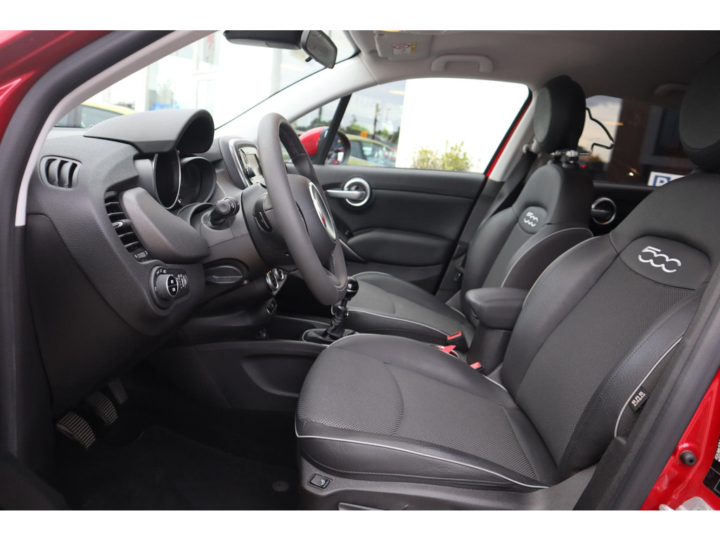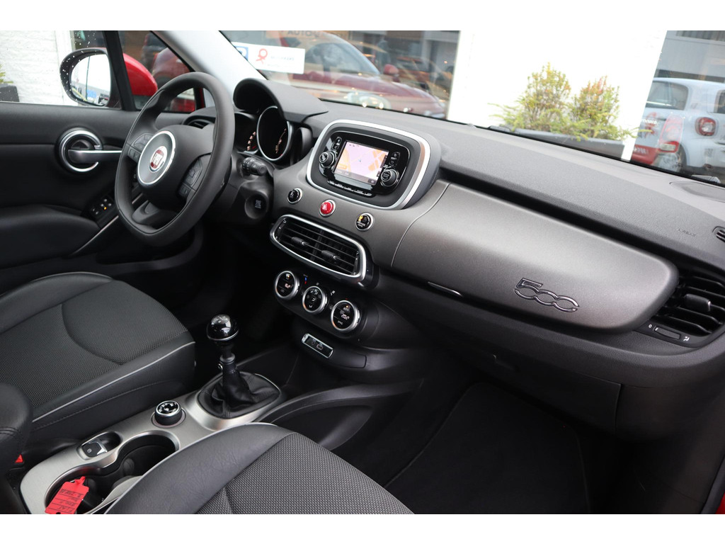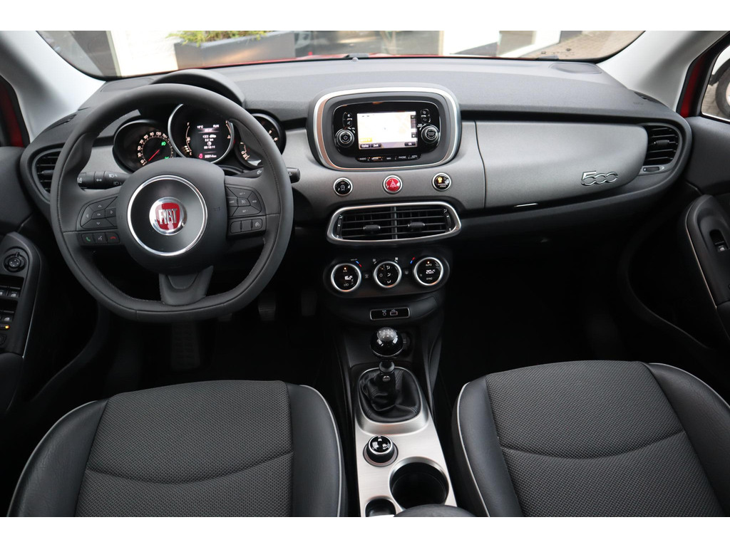 Wegwijs in elke wijk, stad of reisbestemming? Daarvoor zorgt het full map navigatiesysteem! Ook over uw schouder ziet u onderweg niet alles wat er aan de achterzijde gebeurt. Daarom heeft deze Fiat 500 X Cross een achteropkomend verkeer waarschuwing. Ook is de auto voorzien van automatische airconditioning. Onderweg wil je zo min mogelijk onnodige of afleidende handelingen verrichten. Vandaar ook de audiobediening op het stuur. Het drukke verkeer eist onderweg al uw aandacht op. Daarom is het goed dat deze Fiat is voorzien van diverse systemen die u assisteren tijdens de rit. Een automatisch inschakelbare verlichting neemt het waar als het donker wordt of gaat schemeren, en schakelt dan automatisch de verlichting in. Op dezelfde manier "ziet" de regensensor de eerste spatjes regen en schakelt dan de ruitenwissers in, en als het harder gaat regenen zet hij de ruitenwissers ook in een snellere stand. U bent in deze Fiat ook voorzien van cruise control, keyless entry, automatisch dimmende binnenspiegel, lederen stuur, centrale deurvergrendeling met afstandsbediening en boordcomputer.