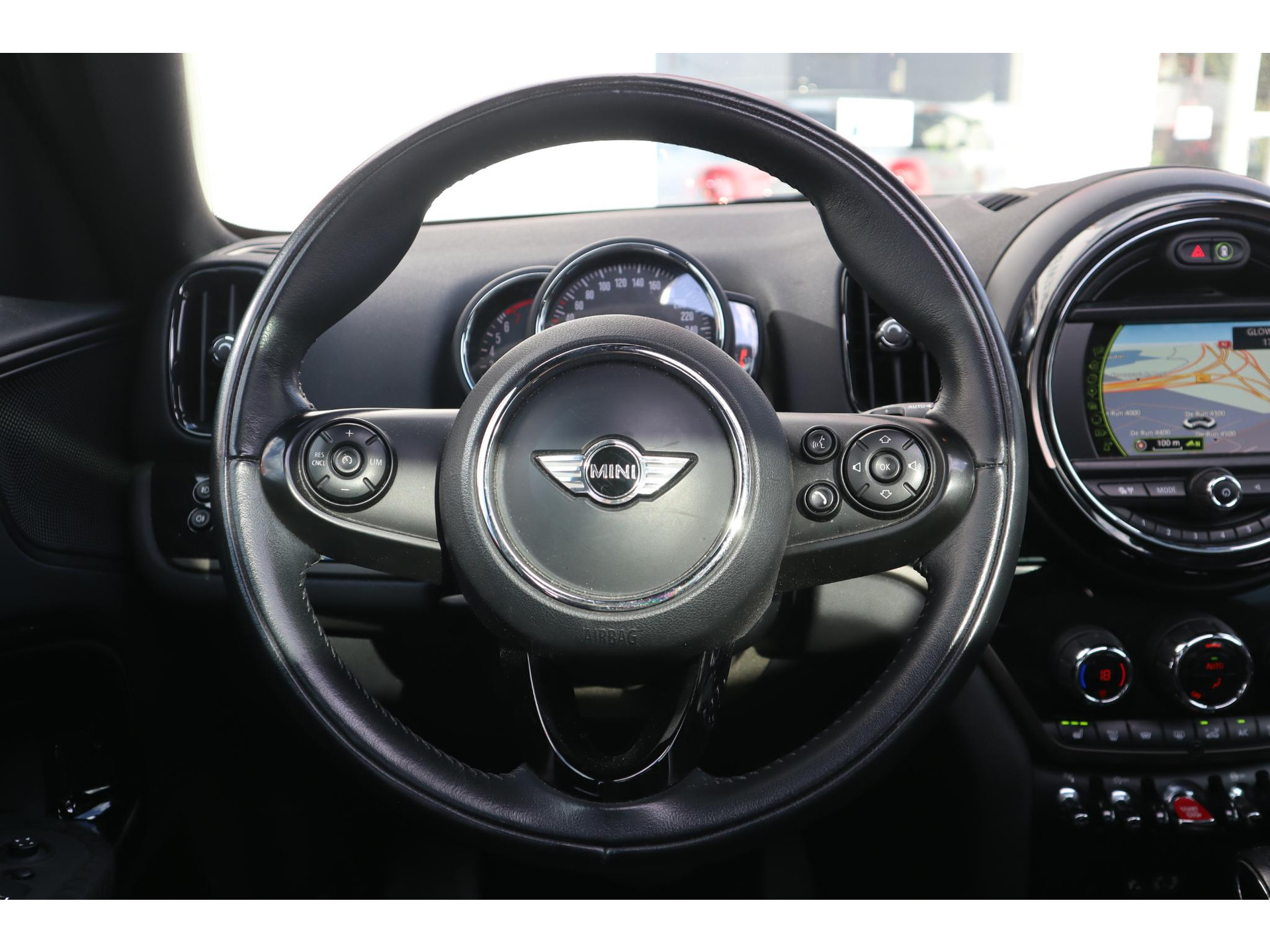 Dankzij de spraaksturing bedient u verschillende functies zonder uw handen van het stuur te halen. Ook praktisch: deze auto is voorzien van een eigen full map navigatiesysteem. Ook over uw schouder ziet u onderweg niet alles wat er aan de achterzijde gebeurt. Daarom heeft deze Mini Mini Countryman een achteropkomend verkeer waarschuwing. Automatische airconditioning regelt volautomatisch de temperatuur. U kiest de gewenste temperatuur en het systeem doet de rest. Liever gepiep dan gekraak? Dan zult u blij zijn met de aanwezige parkeersensoren! Ook regensensor, cruise control, sportstuurwiel, centrale deurvergrendeling met afstandsbediening en boordcomputer zijn aan boord.