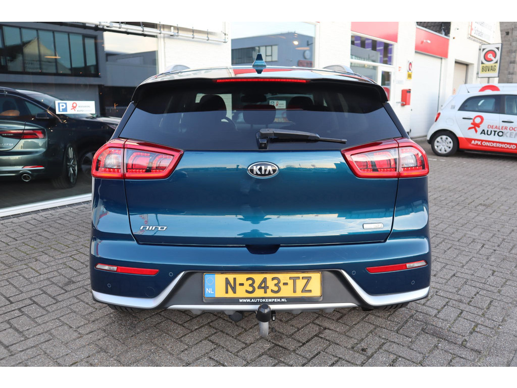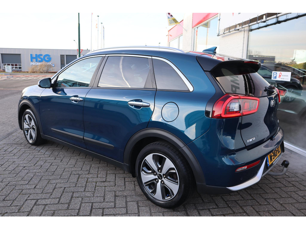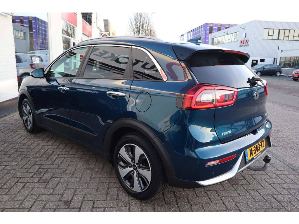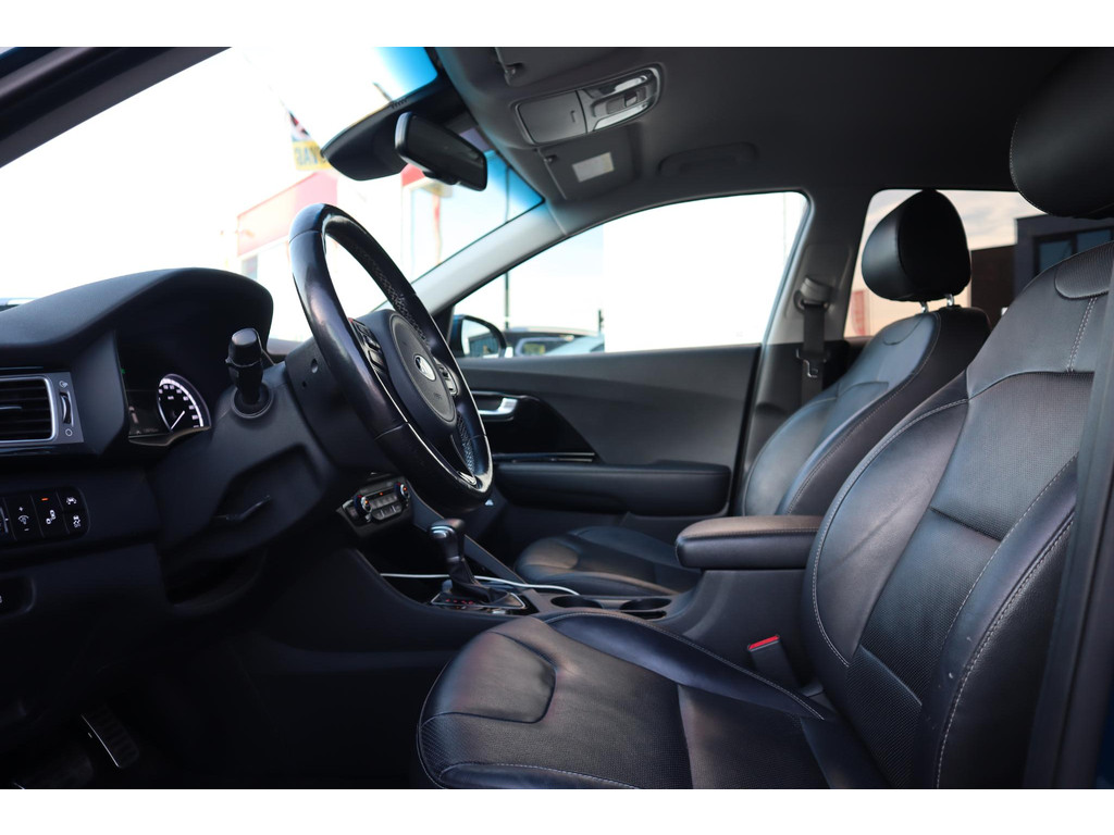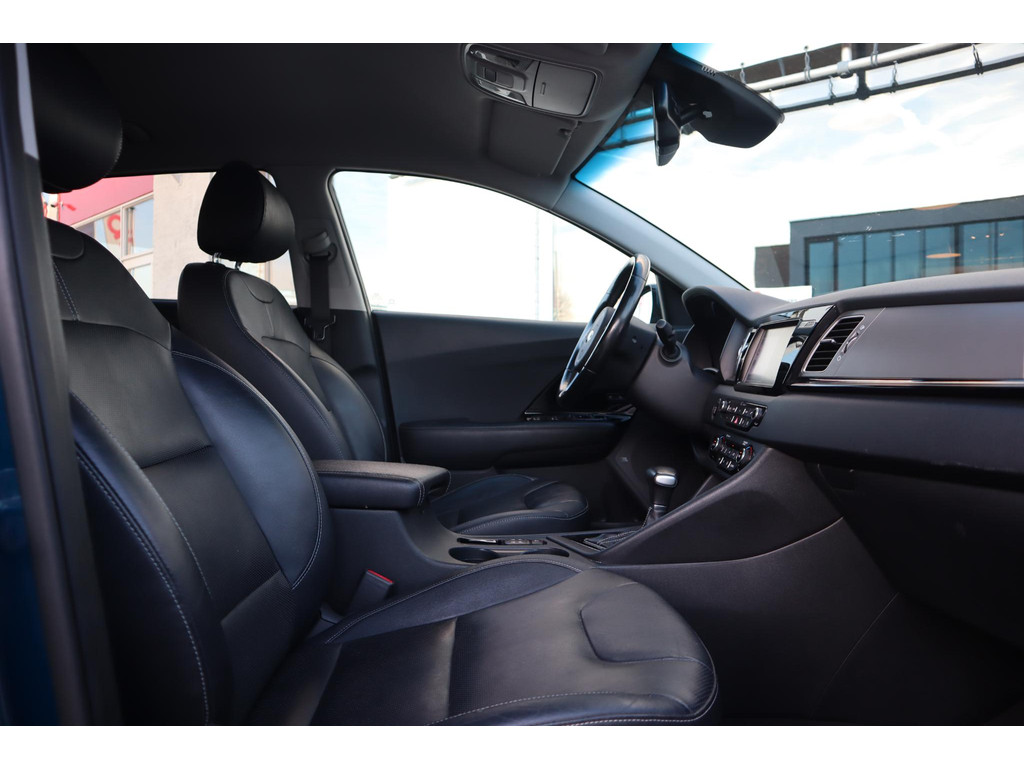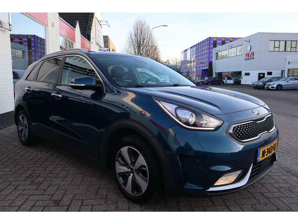 Iedere autoliefhebber weet het, uit Korea komen auto's die met een groot gevoel voor kwaliteit zijn gebouwd. Auto's met karakter, gemaakt voor de veeleisende automobilist. Elektrisch rijden of toch benzine? Voor allebei is iets te zeggen. Daarom biedt de hybride motor van deze Kia Niro de keus. Elke rit in deze Kia Niro heeft een tikje meer, dankzij het lederen interieur. In dit voertuig hoeft u nooit meer kou te lijden dankzij functies als stoelverwarming en verwarmbare achterbank, evenals een verwarmbaar stuur. Met de krachtige xenonverlichting rijdt u ontspannen in het donker. De uitmonstering van deze auto wordt gecompleteerd door onder meer 18 inch lichtmetalen velgen, extra getint glas, in delen neerklapbare achterbank en LED-achterlichten.