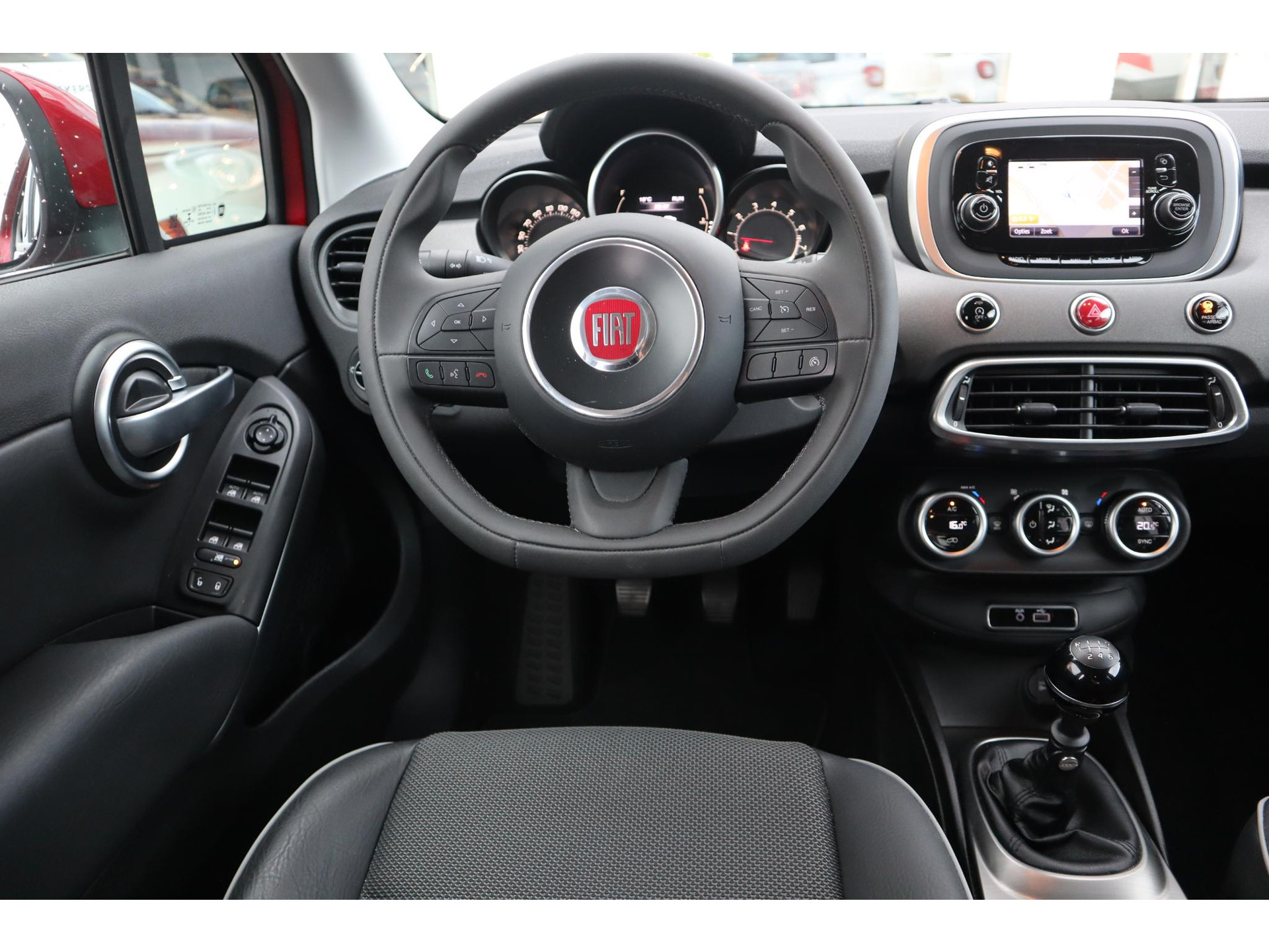 Wegwijs in elke wijk, stad of reisbestemming? Daarvoor zorgt het full map navigatiesysteem! Ook over uw schouder ziet u onderweg niet alles wat er aan de achterzijde gebeurt. Daarom heeft deze Fiat 500 X Cross een achteropkomend verkeer waarschuwing. Ook is de auto voorzien van automatische airconditioning. Onderweg wil je zo min mogelijk onnodige of afleidende handelingen verrichten. Vandaar ook de audiobediening op het stuur. Het drukke verkeer eist onderweg al uw aandacht op. Daarom is het goed dat deze Fiat is voorzien van diverse systemen die u assisteren tijdens de rit. Een automatisch inschakelbare verlichting neemt het waar als het donker wordt of gaat schemeren, en schakelt dan automatisch de verlichting in. Op dezelfde manier "ziet" de regensensor de eerste spatjes regen en schakelt dan de ruitenwissers in, en als het harder gaat regenen zet hij de ruitenwissers ook in een snellere stand. U bent in deze Fiat ook voorzien van cruise control, keyless entry, automatisch dimmende binnenspiegel, lederen stuur, centrale deurvergrendeling met afstandsbediening en boordcomputer.