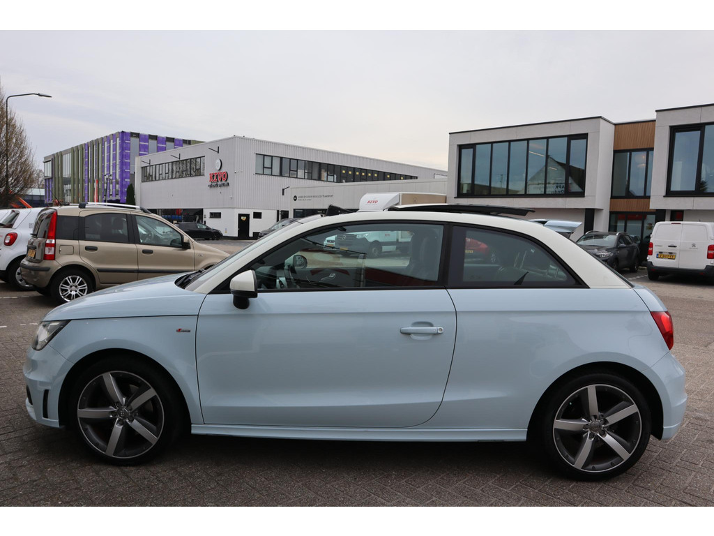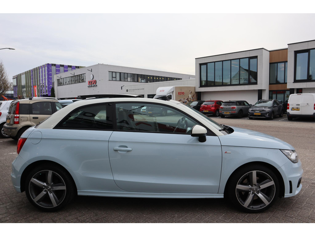 Laat u niets wijsmaken, deze Audi A1 biedt alles wat u van een auto verlangt. En heel aantrekkelijk is de stoere, sportieve S-Line styling. De aandrijving komt voor rekening van een benzinemotor en een automatische transmissie. Een weldaad voor u en uw bijrijder: deze Audi A1 heeft verwarmbare voorstoelen. Opvallend zijn de stoere sportstoelen, die zorgen voor een onwrikbare zit in de scherpe bochten. Daglicht valt vrij binnen door het elektrisch bediende glazen panoramadak. Xenonverlichting zorgt voor een heldere witblauwe lichtkleur en een scherp lichtbeeld. De uitmonstering van deze auto wordt gecompleteerd door onder meer 17 inch lichtmetalen velgen, sportonderstel, verwarmde ruitensproeiers en snelheidsafhankelijke stuurbekrachtiging.