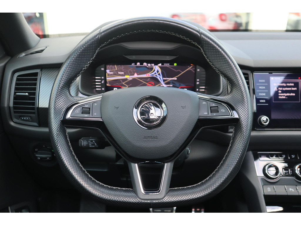 Het is niet alleen maar een stoer uiterlijk, deze Skoda Kodiaq biedt ook de sportieve rijkwaliteiten die u zoekt. De aandrijving van deze Skoda wordt verzorgd door een viercilinder benzinemotor en een automatische transmissie. Van een cabrio heeft u alleen 's zomers plezier. Maar het elektrisch bediende glazen panorama dak van deze auto betekent het hele jaar genieten. Net zoals u elke dag het gemak ervaart van de elektrisch bedienbare achterklep. U zit er altijd warmpjes bij door de stoelverwarming. Ook 20 inch lichtmetalen velgen, LED koplampen, dakspoiler, donker getint glas achter, in delen neerklapbare achterbank en LED-achterlichten zijn aan boord.