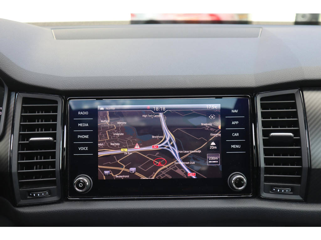 In de Skoda Kodiaq heeft uw veiligheid en die van uw omgeving prioriteit. Dat de auto steeds meer taken van de bestuurder overneemt, merkt u bijvoorbeeld aan het systeem voor verkeersbord-detectie in deze Skoda. Keep your lane? Het Lane-keeping systeem zorgt er automatisch voor. Het systeem van forward collision warning, of in gewoon Nederlands 'botswaarschuwing', treedt in werking als de sensor te weinig afstand signaleert met een voor- of tegenligger. Verder is deze auto uitgerust met dodehoekdetectie, vermoeidheidsherkenning, frontale botsbescherming en bandenspanningcontrolesysteem.
